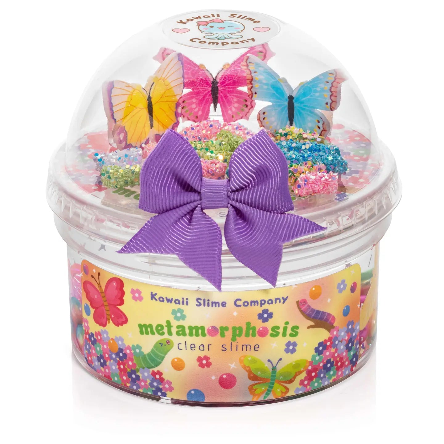 This gorgeous Slime was inspired by the life cycle of a butterfly. We include beads and baubles that are reminiscent of each stage of a butterfly metamorphosis. Stunning rainbow pearl beads as the "egg", sparkly caterpillar like charms as the "larvae" and "pupa"stage and of course colorful butterfly charms! Each Metamorphosis Slime has been scented with a very soft asian pear fragrance and has the most clear and satisfying texture, perfect for pokes and bubble pops.