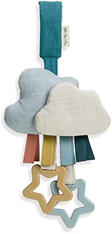 Itzy Ritzy Bitzy Bespoke Jingle Travel Toy for Stroller, Car Seat or Activity Gym, Features Jingle Sound, Hexagon Rings and Adjustable Attachment Loop, Cloud, 0.09 lbs