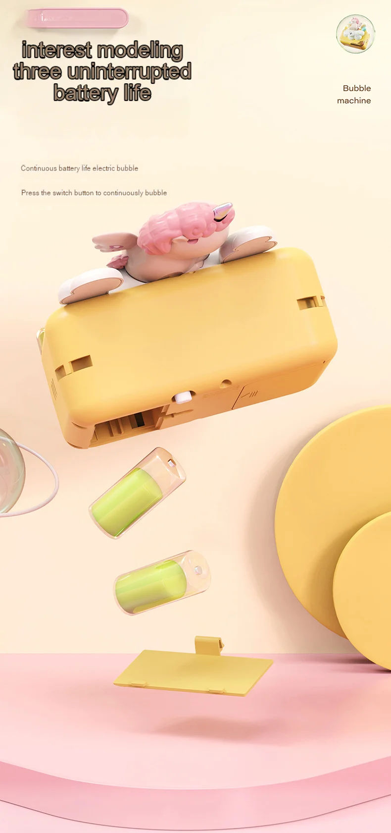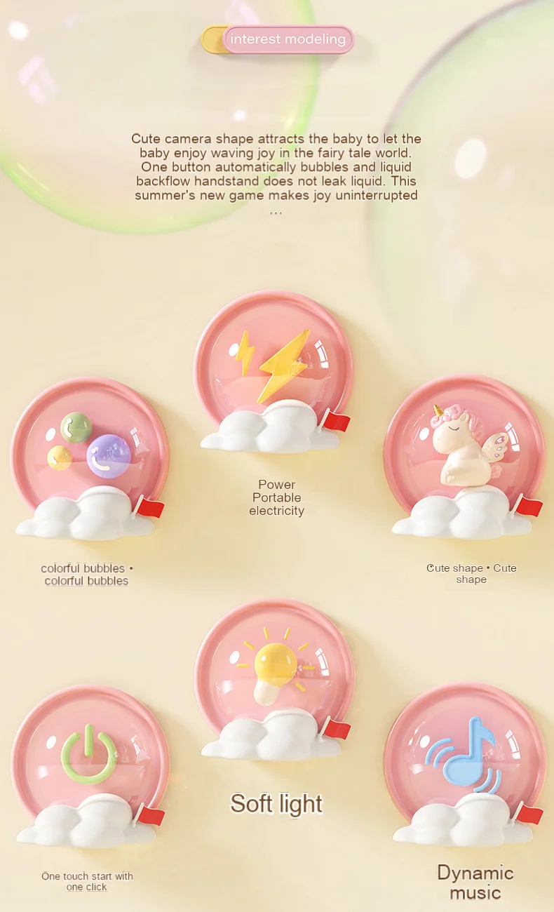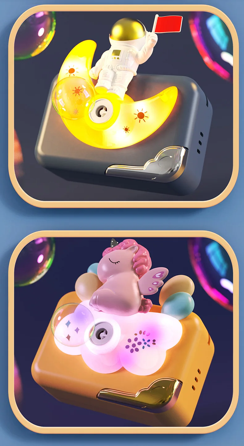 - Light & Music Effects: Enhances playtime with captivating light shows and joyful music, making each bubble-blowing session an event.