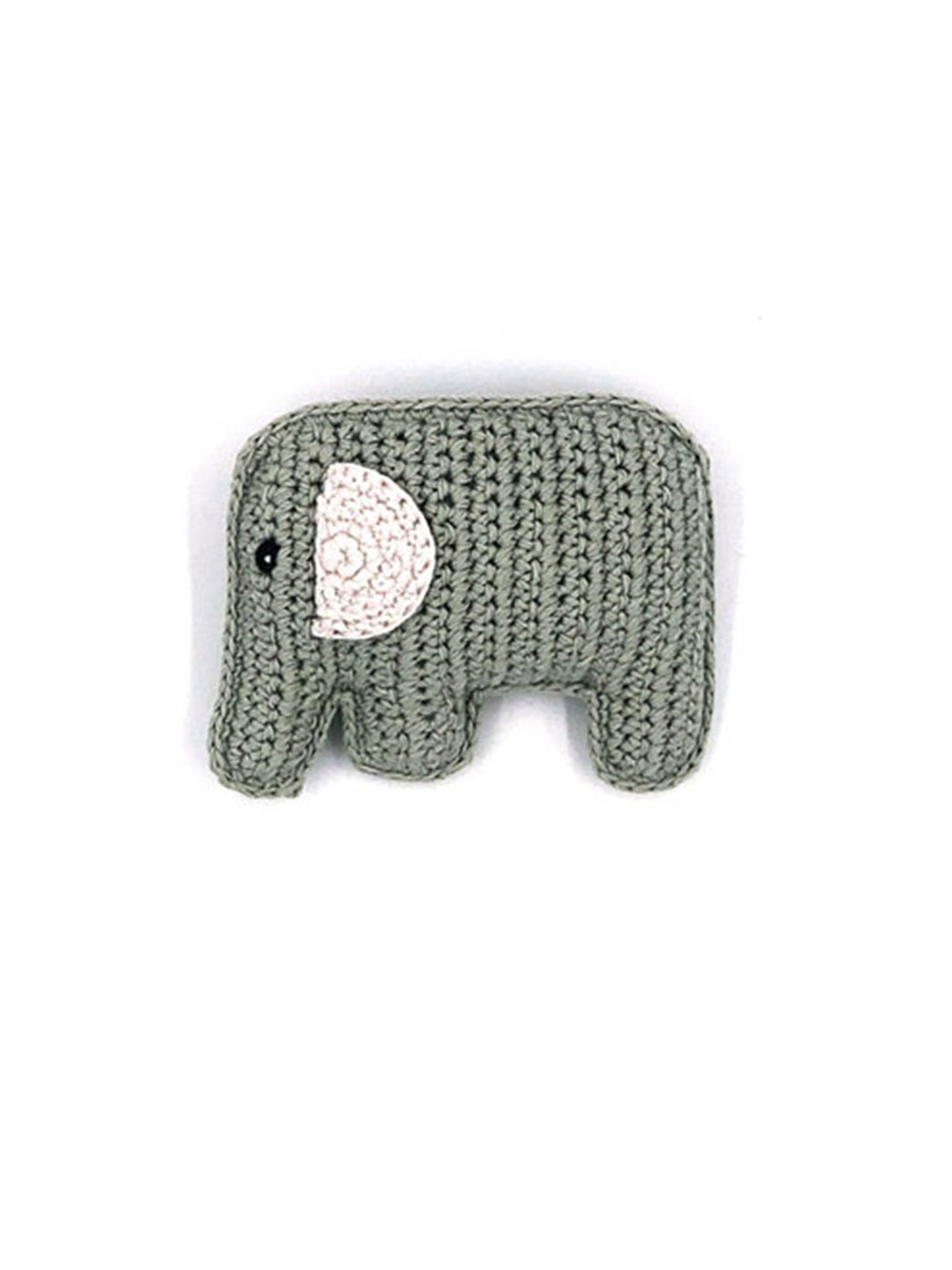 This super cute elephant is a must have for babies! This organic knit elephant rattles, making it great for both cuddling up and playing!