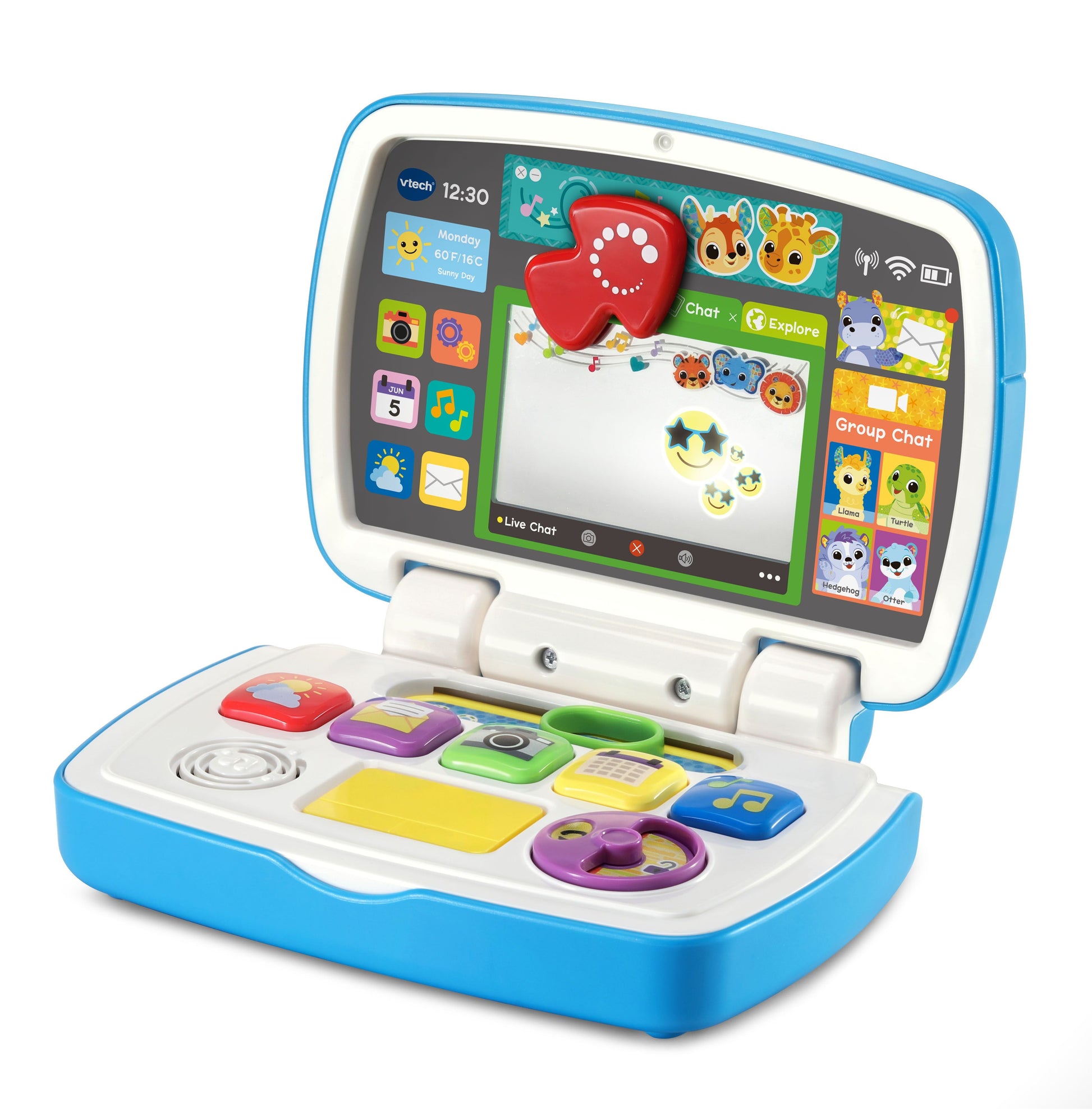 Explore weather, counting, music, self-awareness and pretend play with a tot sized laptop toy.